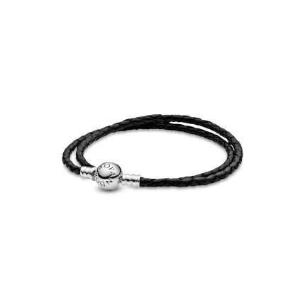 Pandora Moments Double Black Leather Bracelet