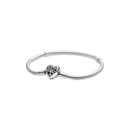 Pandora Moments Family Tree Heart Clasp Snake Chain Bracelet