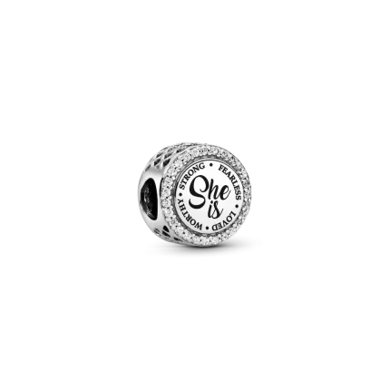 The Engravable She Is Heart Charm is a powerful reminder of strength and self-love. This sterling silver heart-shaped charm is