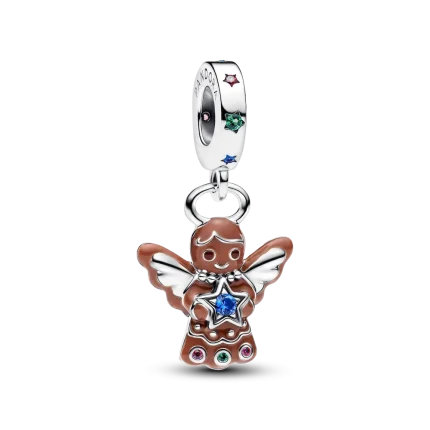 Made with love and full of magic. This sterling silver gingerbread angel charm is hand-finished with colorful enamel, man-made crystals