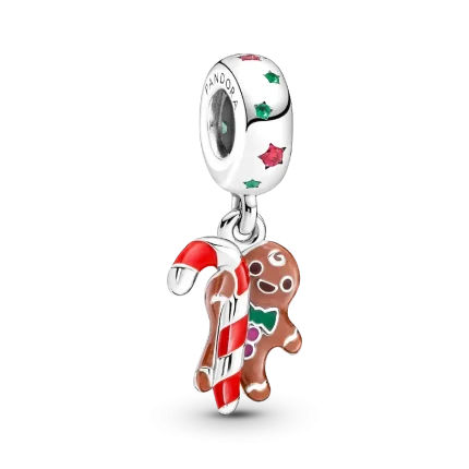This mischievous Gingerbread Man Dangle Charm will steal your heart. Hand-finished in sterling silver and decorated with colorful red, pink