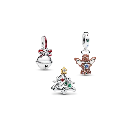 Add festive charm to your look with this holiday-inspired sterling silver charm trio. Includes the Gingerbread Angel Dangle Charm, Holiday