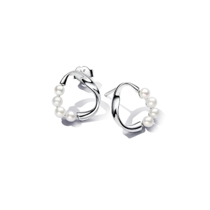 Introducing a new kind of classic with the Organically Shaped Circle & Treated Freshwater Cultured Pearls Stud Earrings. Each earring