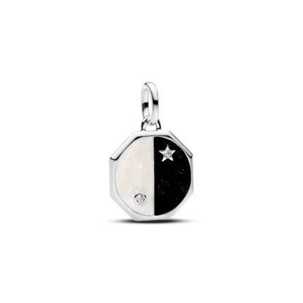 Opposites attract with our Yin and Yang Dangle Charm. On one side, white and black enamel set with symbolic stones