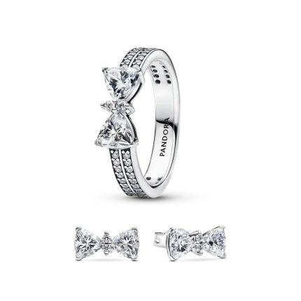Sparkling Bow Double Ring Set