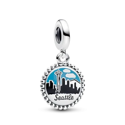 Embrace the spirit of innovation with the Seattle Skyline Dangle Charm. Featuring the iconic Space Needle in vibrant enamel detailing,