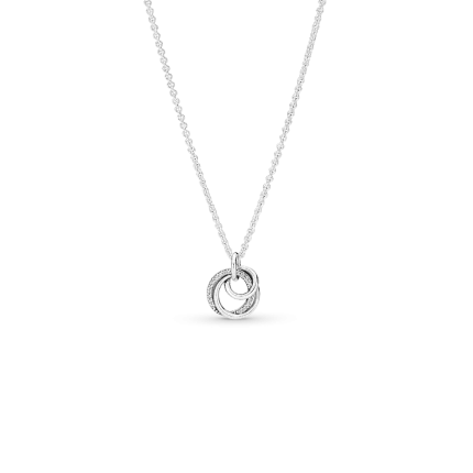 A symbol of everlasting ties, the Family Always Encircled Pendant Necklace features three entwined circles in the pendant – two