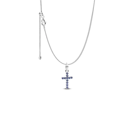 Sparkling Blue Round Bezel Cross Pendant Necklace