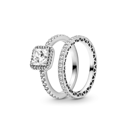 True Elegance Square Halo Ring Set