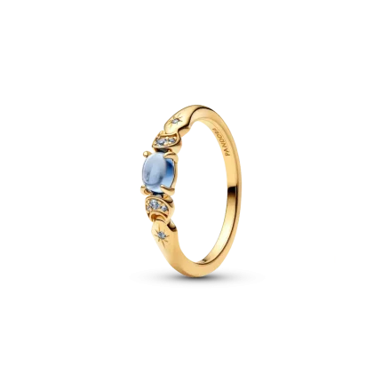Inspired by Disney’s Jasmine, this 14k gold-plated ring features a moonlight blue center stone, sparkling crescent moons and stars—celebrating courage,