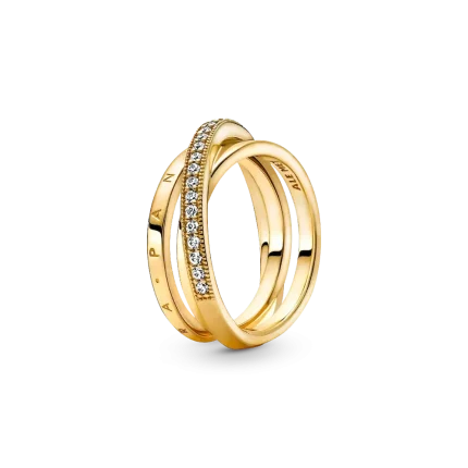 Go for linear layers with the Crossover Pavé Triple Band Ring. Hand-finished in 14k gold plating, this ring features three