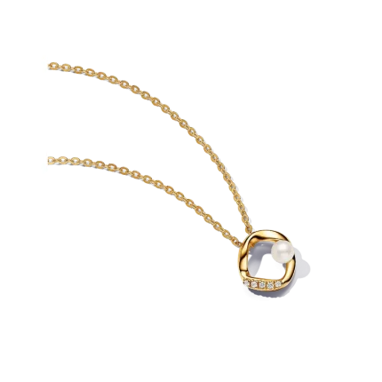 Organically Shaped Pavé Circle & Treated Freshwater Cultured Pearl Collier Necklace