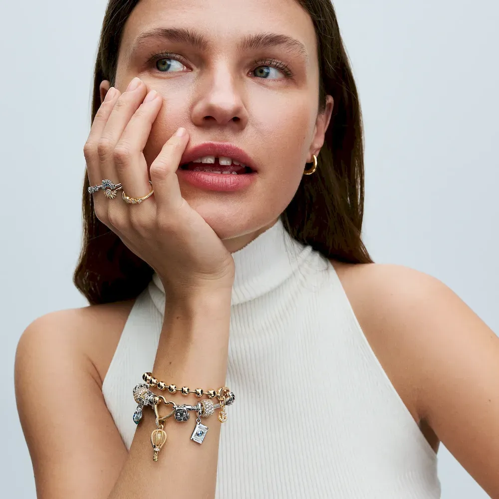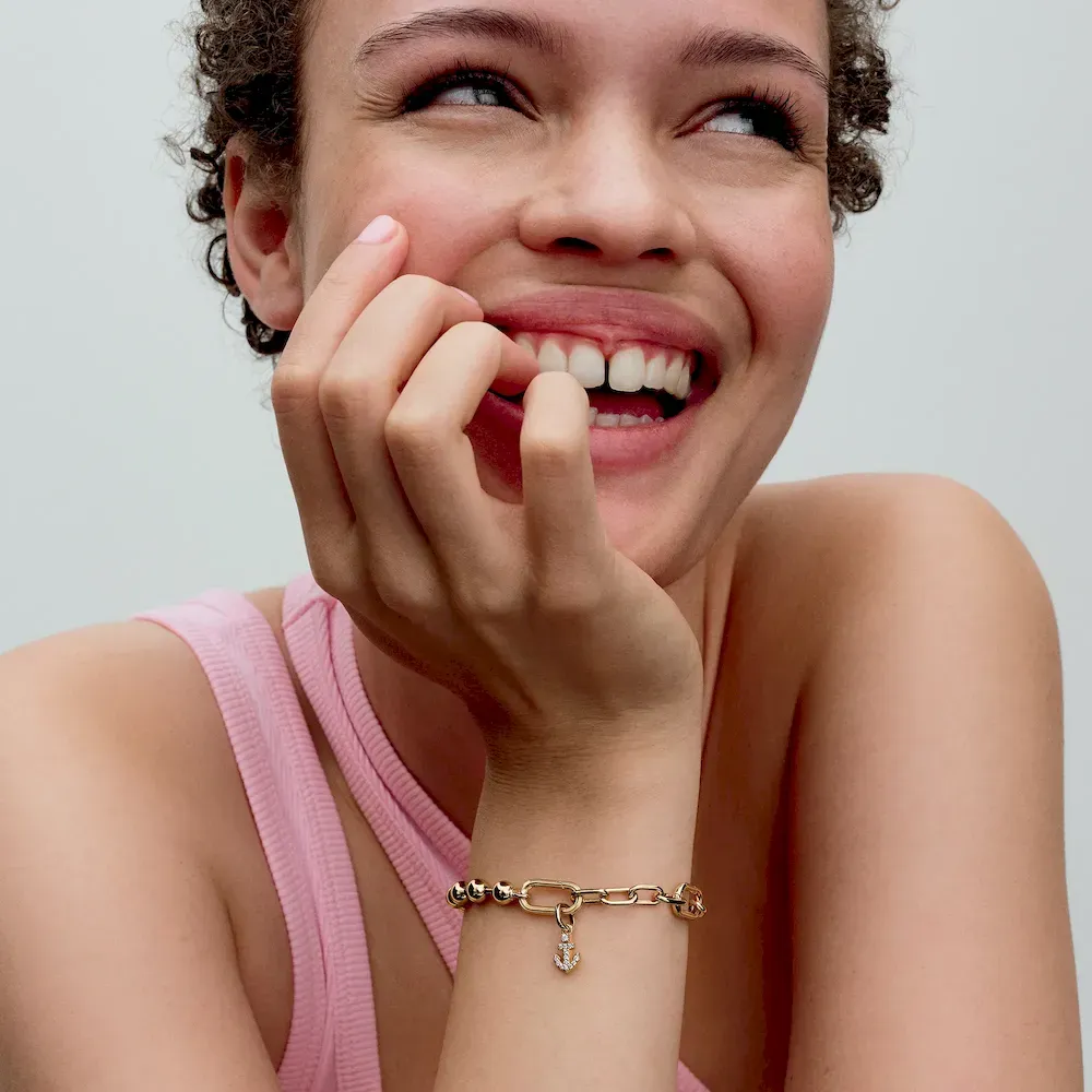 Staying grounded never looked so good. A play on contrasting textures: one side of this anchor charm features sparkling stones, while the other is embellished with microbeading. A reminder that living in the moment is one of the best paths to stability.