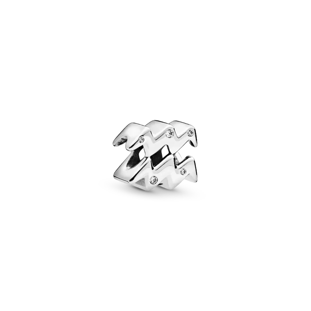 Show the world who you are with this sparkling Aquarius Zodiac Charm Bracelet Set. Known for being revolutionaries and great thinkers, Aquarians have always aspired to change the world with their big ideas and imaginations. They are enigmatic, unique, and have a personality that is quite unlike any other. Celebrate yourself or a special Aquarius with this two-sided Sparkling Aquarius Zodiac Charm that is hand-finished in sterling silver with beaded details on the back and cubic zirconia on the front. Complete with a stunning Heart Clasp Snake Chain Bracelet, hand-finished sterling silver.