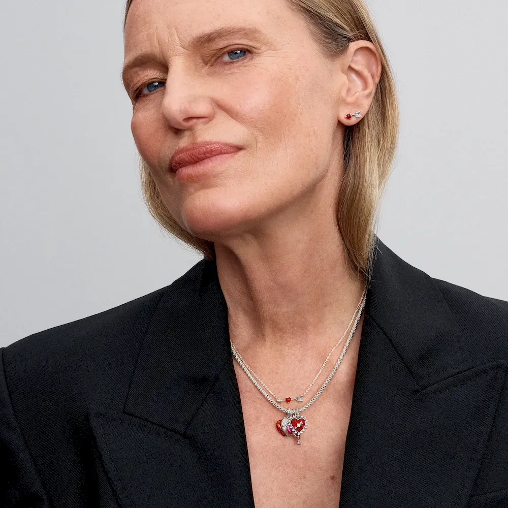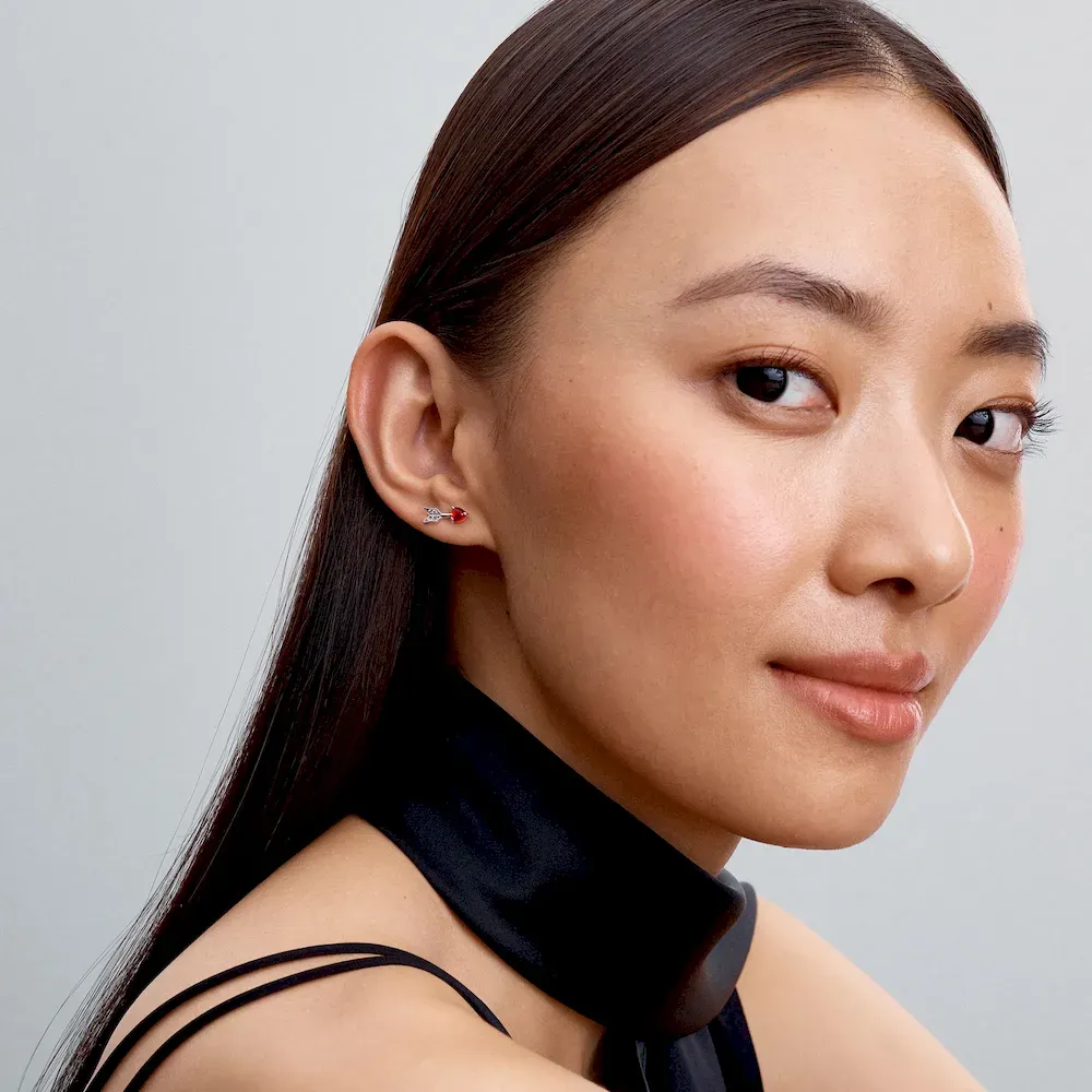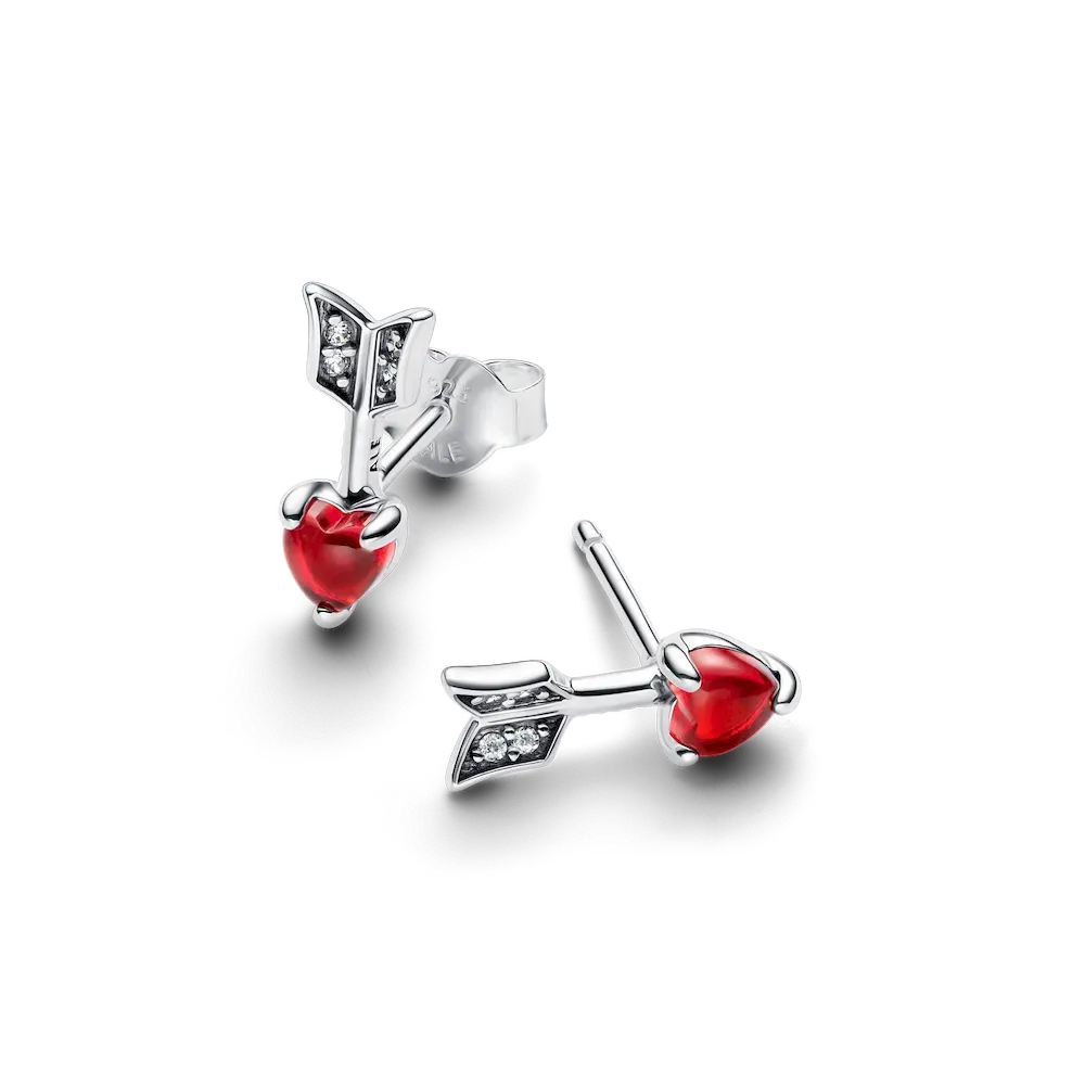 Be hit by Cupid’s arrow all day every day with these romantic stud earrings. Crafted from sterling silver, each earring features four bead-set cubic zirconia, adding a touch of sparkle. A heart-shaped Murano glass motif at the tip creates the head of the arrow. Perfect for everyday wear or as a gift for your Valentine, celebrate love with earrings that speak from the heart.
