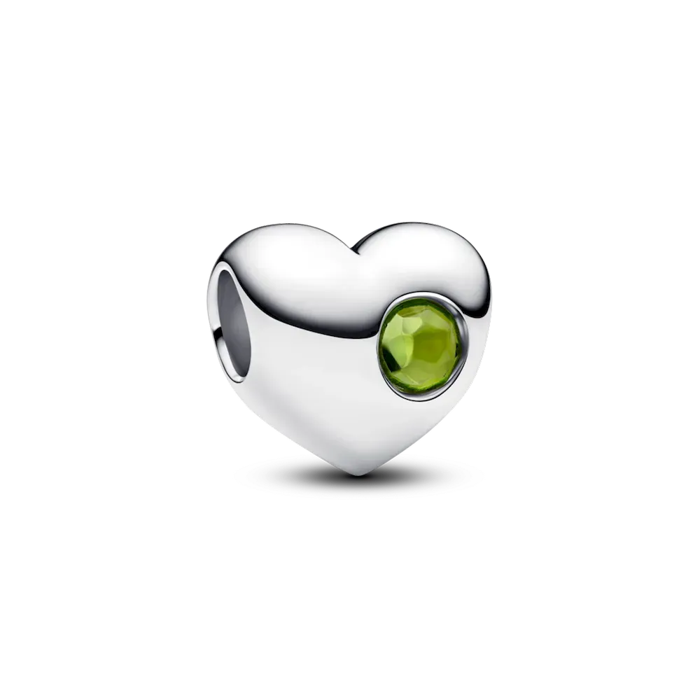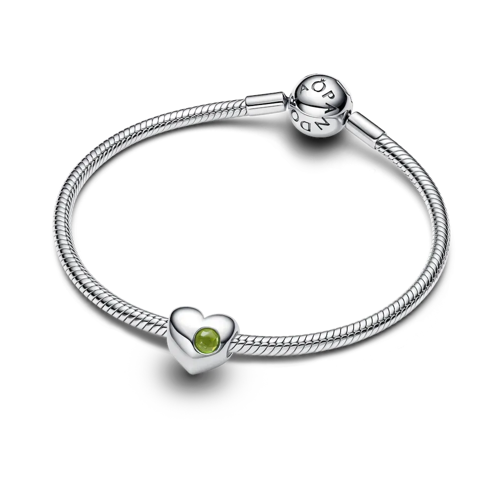 This set includes sterling silver hoop earrings featuring our signature snake chain pattern and an engravable heart charm with a radiant green man-made crystal for August. Add a heartfelt message to make it truly yours.