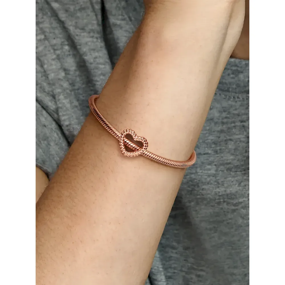 Feel the love with our 14k rose gold-plated Beaded Open Heart Charm, perfect for adding depth and dimension to a charm bracelet. The open design is minimally detailed with a beaded silhouette. Thread it on a favourite Pandora Moments bracelet or bangle, adding other pieces that tell your story in a way that’s uniquely you.
