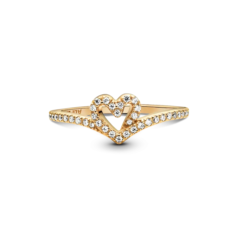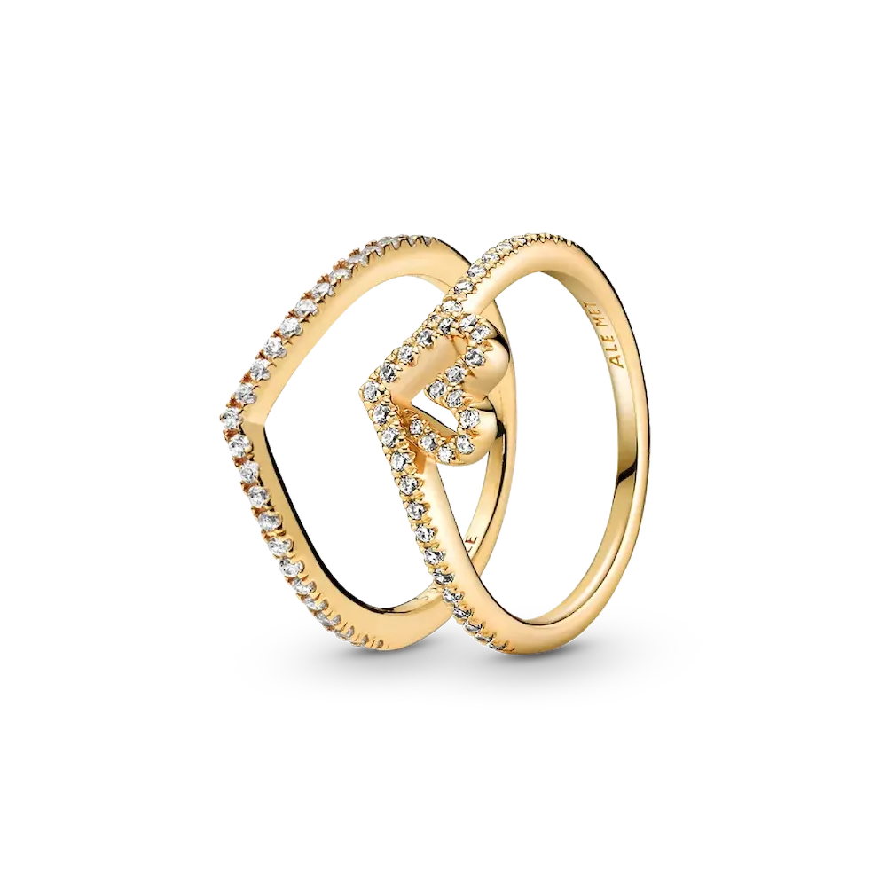 Smooth and sparkling surfaces come together in this versatile ring set that’s truly better together. The Sparkling Wishbone Ring in 14k gold-plated unique metal blend beautifully complements the Timeless Wish Sparkling Heart Ring with heart-shaped, stone-embellished detail that flows into its wishbone design.