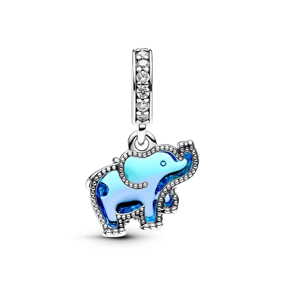 Blue Murano Glass Elephant Dangle Charm