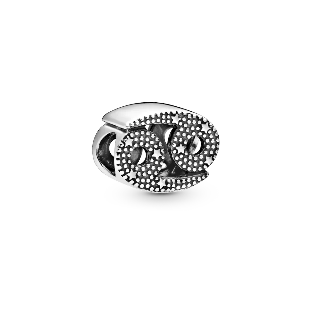Let your Cancer pride shine with this sterling silver set featuring a sparkling zodiac charm. Cancers are traditionally known for being highly intuitive and their psychic abilities often manifest in tangible ways. The Cancer charm has two distinct sides, one polished with cubic zirconia dotted around and the other beaded with stars for that extra celestial touch. Pre-styled on a matching Heart Clasp Snake Chain Bracelet, wear it as a reminder of your zodiac sign’s strengths or gift to the charm-loving Cancer in your life.
