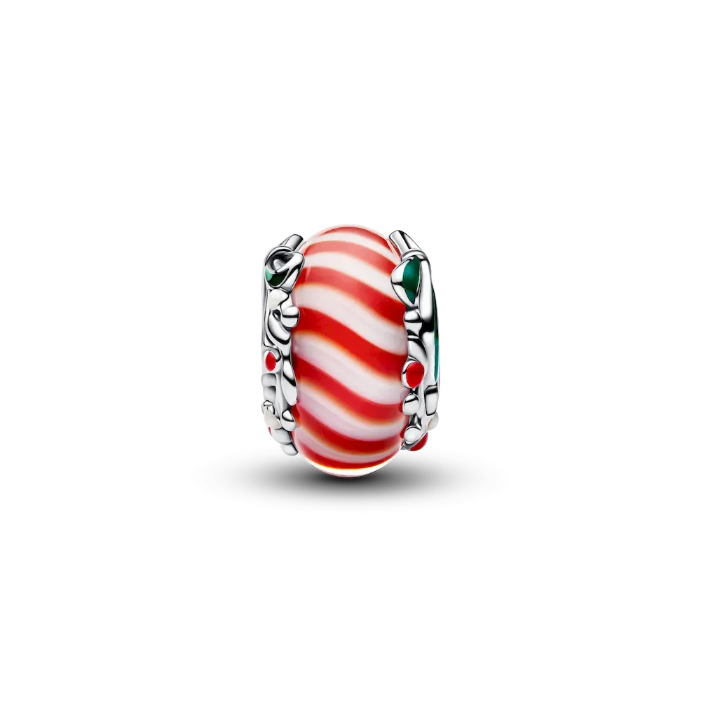 A sweet burst of holiday cheer. This sterling silver charm features vibrant red and white Murano glass shaped like candy. Expertly crafted details evoke nostalgia and joy — the perfect symbol of seasonal sweetness.