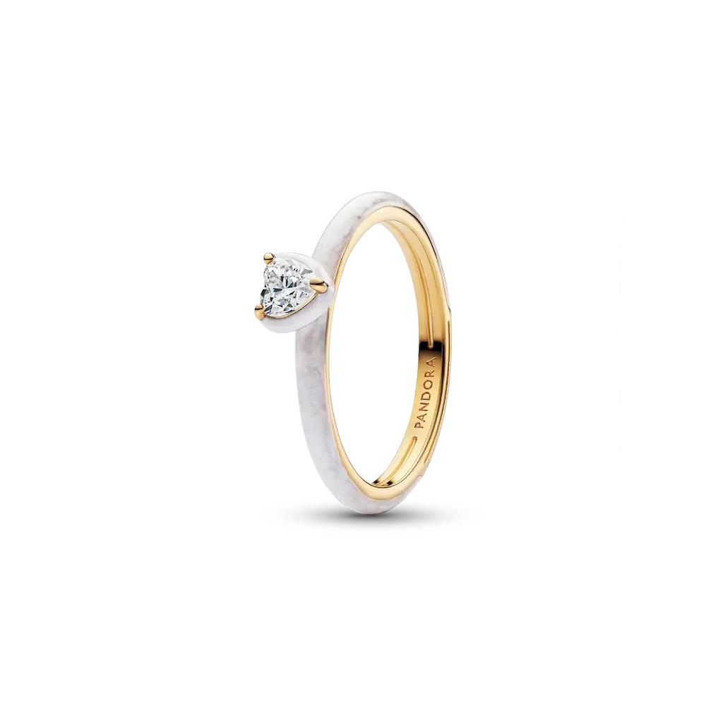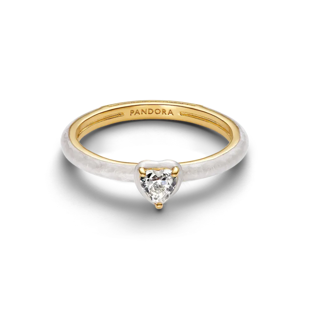Stack your heart out. This set of four heart-shaped rings is crafted in sterling silver and 14k gold plating with colorful enamel and stones — perfect for bold mixing, matching and making your style truly personal.