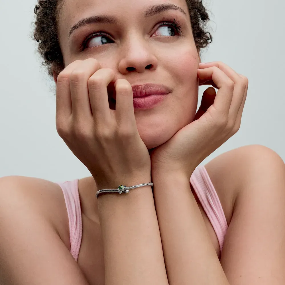 Add a lively touch to your look with the Climbing Frog Charm. This sterling silver charm depicts a frog in a climbing position, its outer body covered in metallic-effect shaded green-and-blue enamel. Thoughtful and realistic elements include feet and hands, smiling mouth and eyes with raised, engraved details. Slightly smaller than other charms, this tiny frog invites you to play with scale in your styling – and to celebrate one of nature’s incredible creatures.
