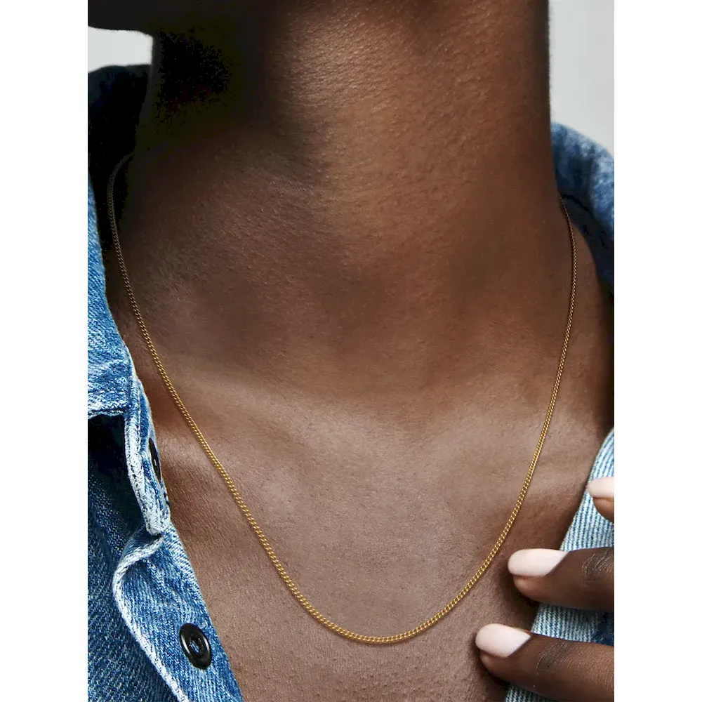 No jewelry collection is complete without a simple versatile necklace that can be worn by itself or accessorized with your favorite pendants. One of the most essential pieces for any wardrobe, our 14k gold-plated Curb Chain Necklace features a sliding clasp, flat interlocking chain links and a dangling curb chain. Wear the slider necklace on its own or layer it for a fashion-forward look and adjust to suit your desired length.