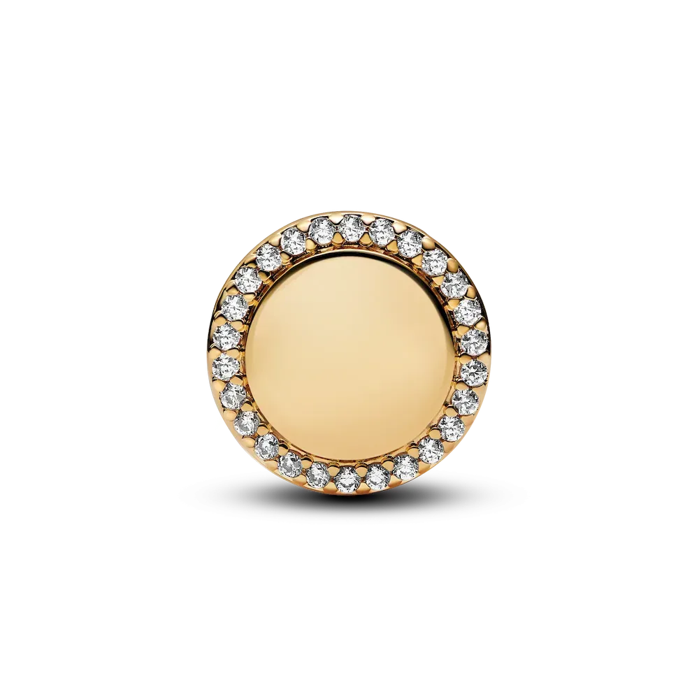 Celebrate your unbreakable bond with this stunning 14k gold-plated Engravable Daughter Charm. Featuring a dazzling row of pavé cubic zirconia and engraved with