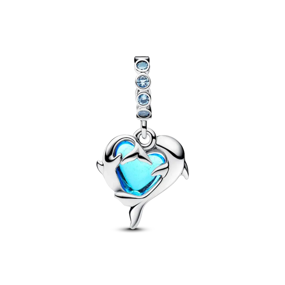 Celebrate beautiful ocean creatures with a trio of charms in a dolphin, whale and starfish design. Each charm is crafted in sterling silver and features a blue Murano glass detail.