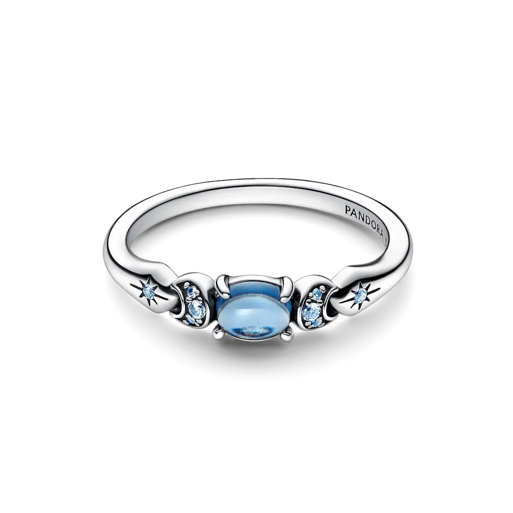 Stack your favorite stories with Disney x Pandora. Celebrate the 30th anniversary of Disney’s classic, Aladdin, with pieces inspired by the brave and self-assured Princess Jasmine. Crafted from sterling silver, this stackable ring features an oval moonlight blue man-made crystal at its center, surrounded with icy blue man-made crystals, referencing Princess Jasmine’s characteristic teal blue color. Make your own wishes come true and layer this sterling silver ring into your everyday favorites to let your bravery shine for all to see – or gift it to an Aladdin fan and take their jewelry into a new world.