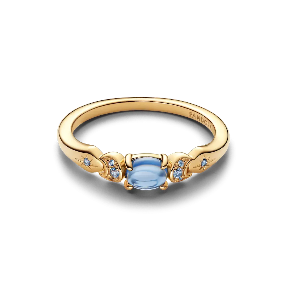 Inspired by Disney’s Jasmine, this 14k gold-plated ring features a moonlight blue center stone, sparkling crescent moons and stars—celebrating courage, self-belief, and the magic of dreaming big.