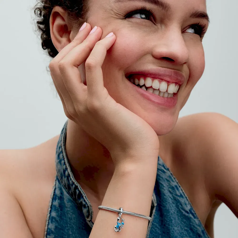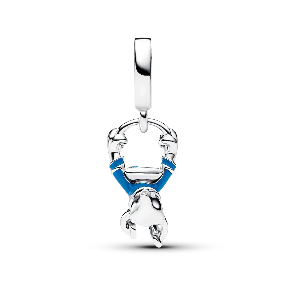 Channel a classic character with the Disney Donald Duck Dangle Charm. This sterling silver design depicts Disney’s Donald Duck mid-jump with raised arms, closed eyes and an open bill. His nautical shirt and hat feature blue and red enamel details. Famous for his fiery temper, strong opinions and mischievous hijinks, Donald Duck is an iconic character in the Disney universe, making this charm a perfect addition to any fan’s collection.