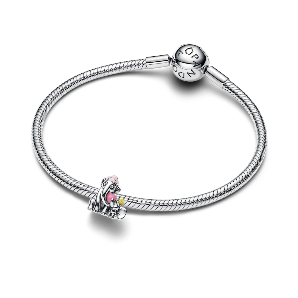 Embrace the joy and sweetness of the mother-child bond with the Disney Dumbo & Mom Charm. This sterling silver charm is shaped like Disney’s Dumbo and his mom, Mrs Jumbo, each wearing a colorful hat and snuggling a pink heart between them. On Mrs Jumbo’s back, an engraved message reads