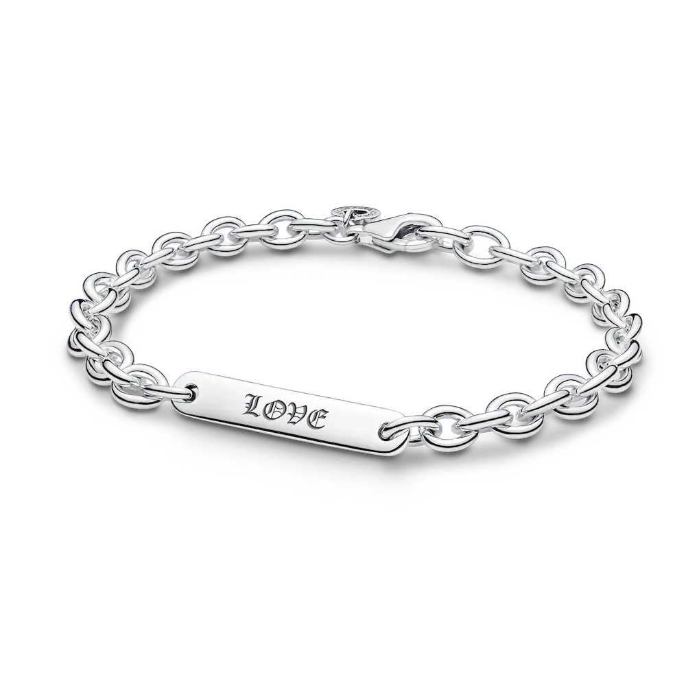 Personalize your wrist with the Engravable Bar Link Bracelet. Hand-finished in sterling silver, this bracelet features a simple polished silver bar on a chain bracelet. Both sides of the silver bar are engravable. Each bracelet can be adjusted up or down one size. Whether you engrave your initials, an important date or another message that has special meaning to you, this bracelet is the epitome of modern, chunky, customized style.