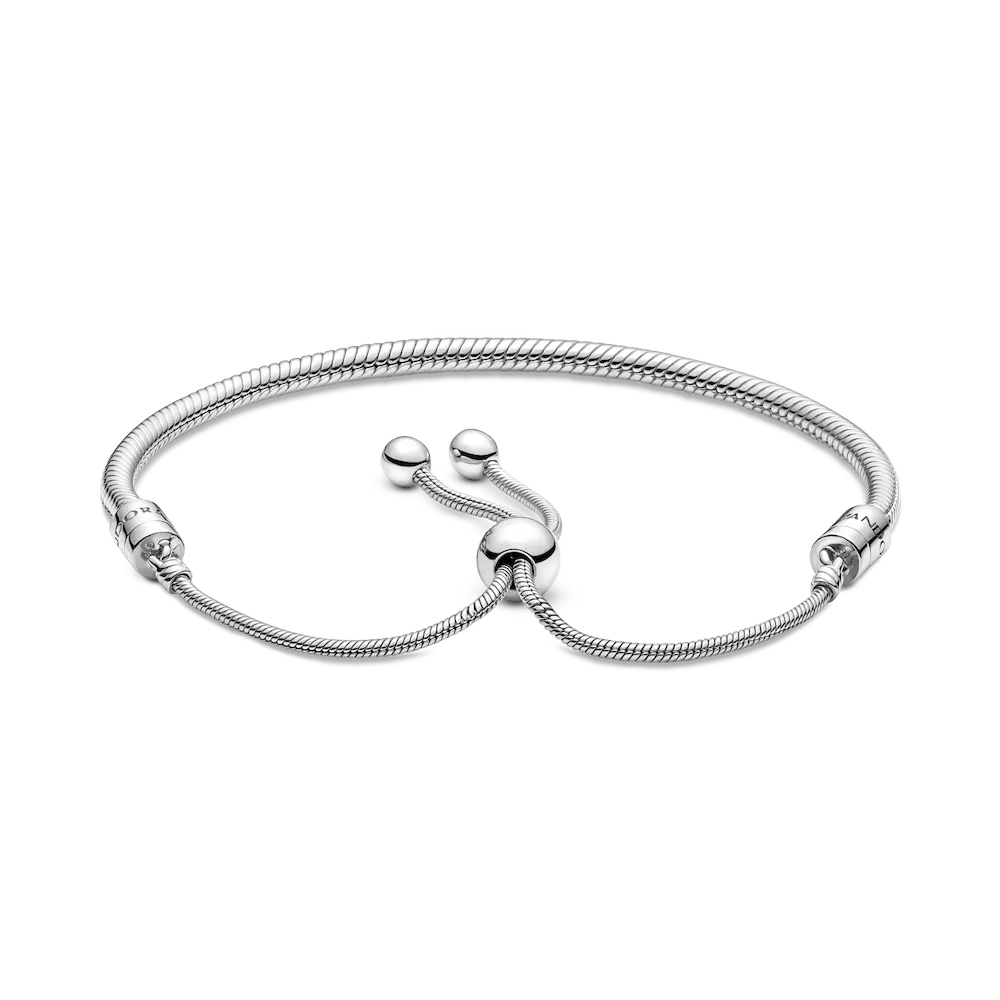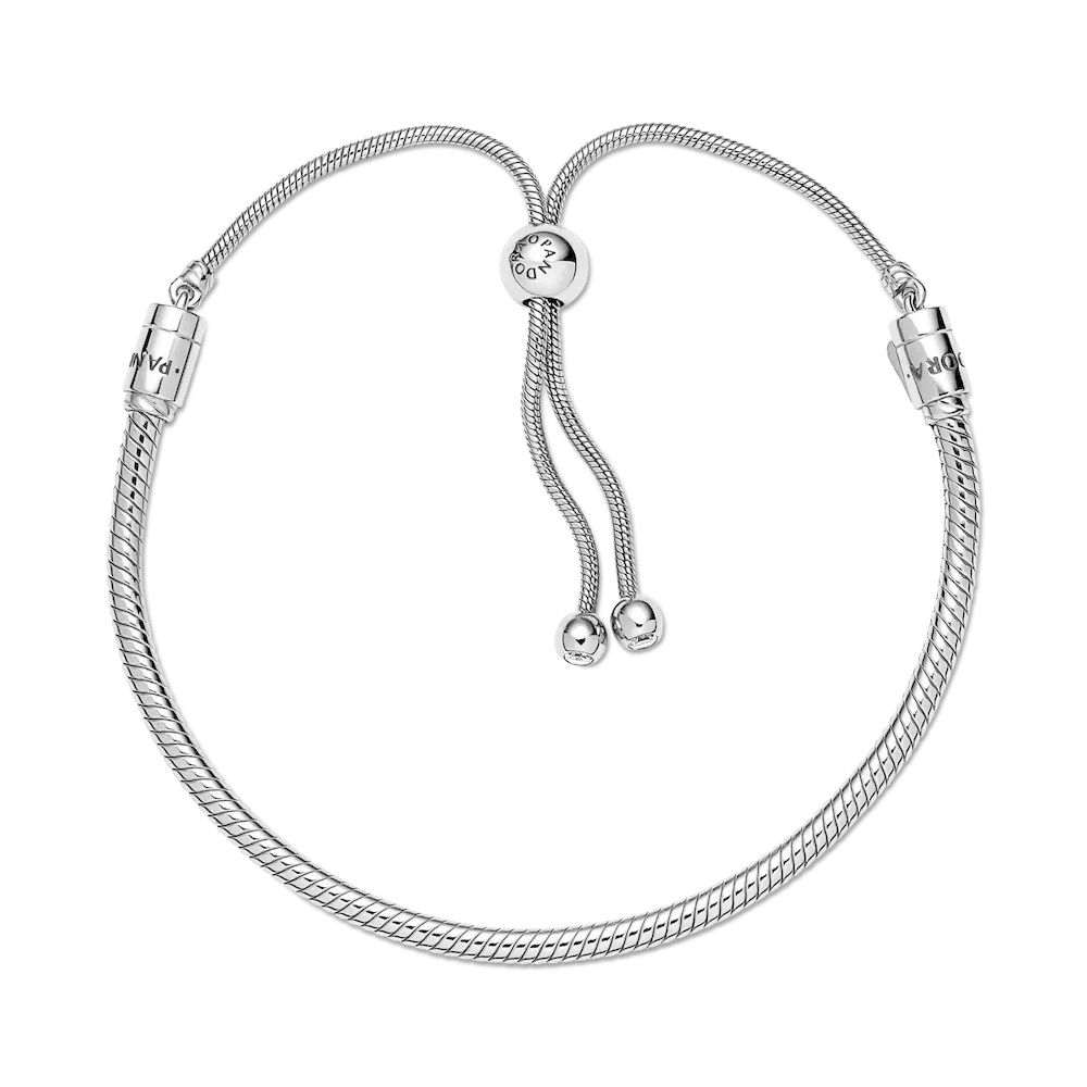 Create a style as unique as your story with this personalized jewelry set. Featuring the Engravable Heart Tag Dangle Charm and the Pandora Moments Snake Chain Slider Bracelet, this duo is perfect for celebrating meaningful connections and timeless elegance. The heart-shaped charm, crafted in sterling silver, offers engravable front and back surfaces—ideal for inscribing names, dates, or special messages. Accentuated with a touch of sparkle from a line of clear cubic zirconia, it’s a heartfelt piece that reflects your individuality. Paired with the Snake Chain Slider Bracelet, this set combines sophistication and versatility. Hand-finished with shimmering stone-set end caps and a sliding clasp for a perfect fit, the bracelet is designed to showcase your favorite charms. This set makes the perfect gift or a treasured addition to your collection—because jewelry should be as unique and special as you are.