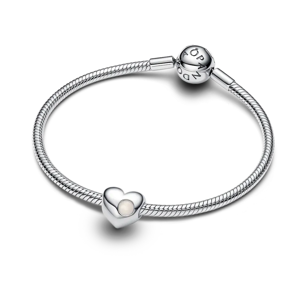 Celebrate love and connection with our engravable heart-shaped charm, crafted in sterling silver with a luminous man-made mother of pearl. The perfect canvas for a personal note or meaningful memento.