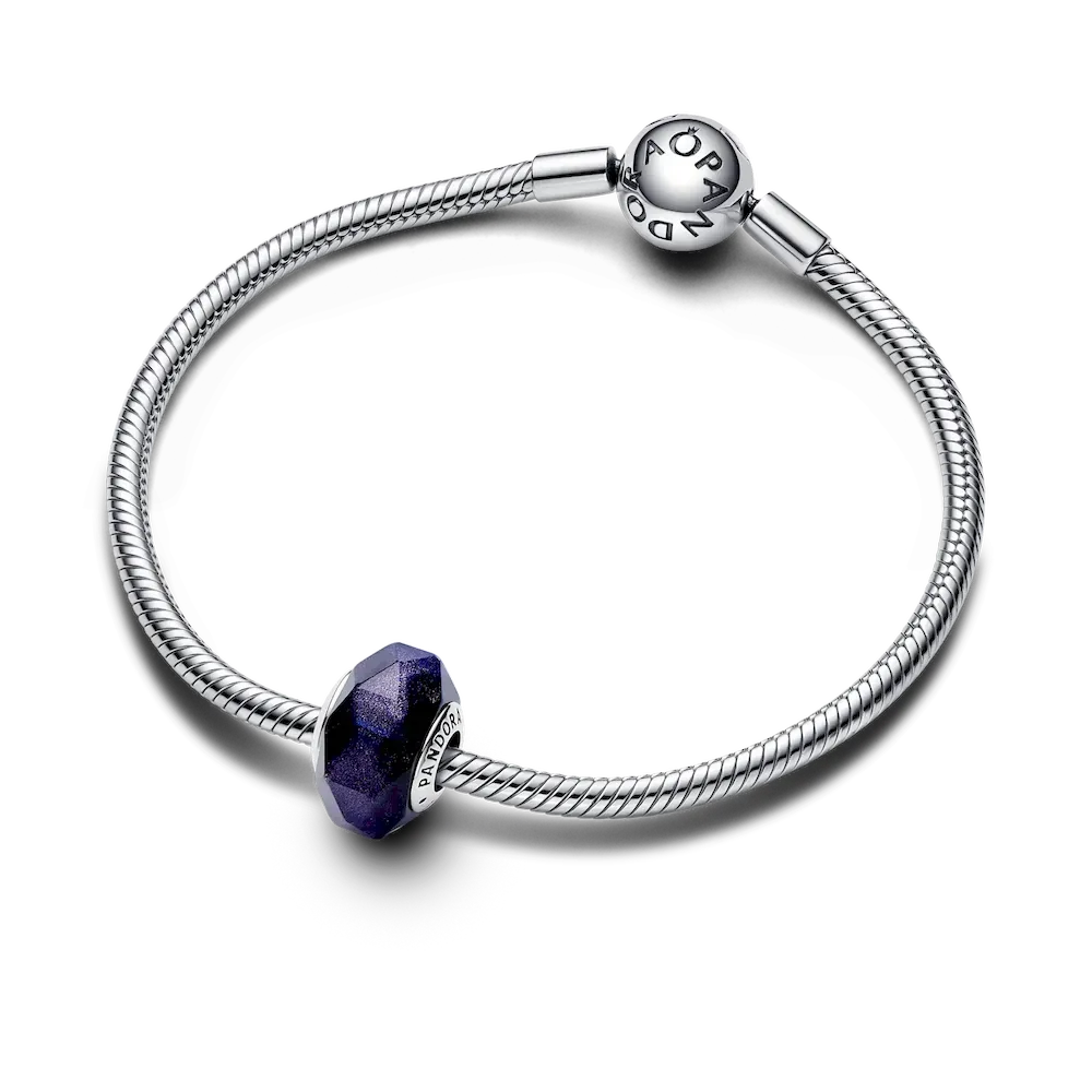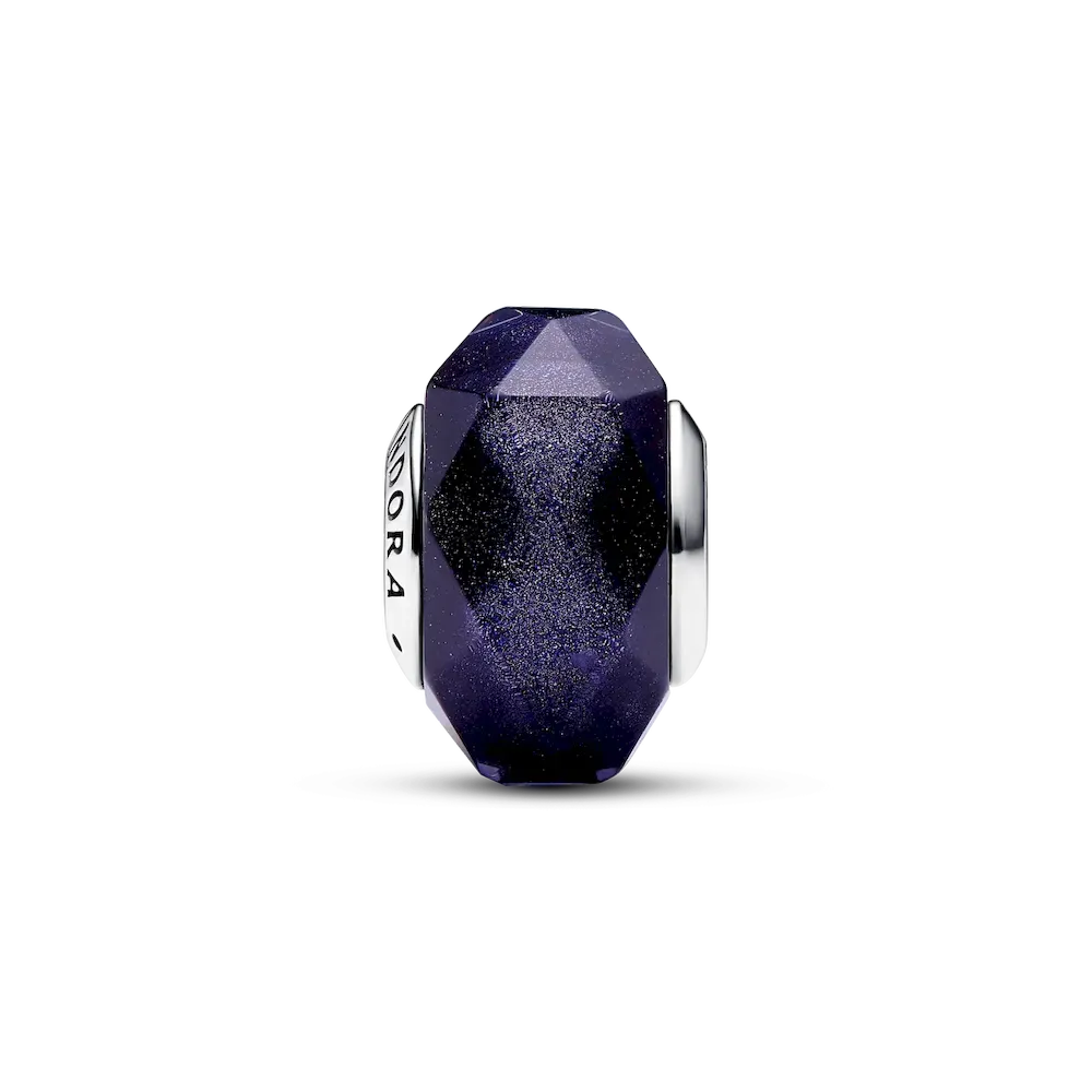 Blue shimmer captures the magic of the night sky in the Faceted Blue Murano Glass Charm. A shiny new addition to the Pandora Moments collection, the Murano glass requires precise craftsmanship to reveal the true depth of its mesmerising blue hue. The glittering blue Murano glass charm has many rhombus-shaped facets that are designed to twinkle like a star-studded night sky, making it the perfect addition to any chain or bracelet.