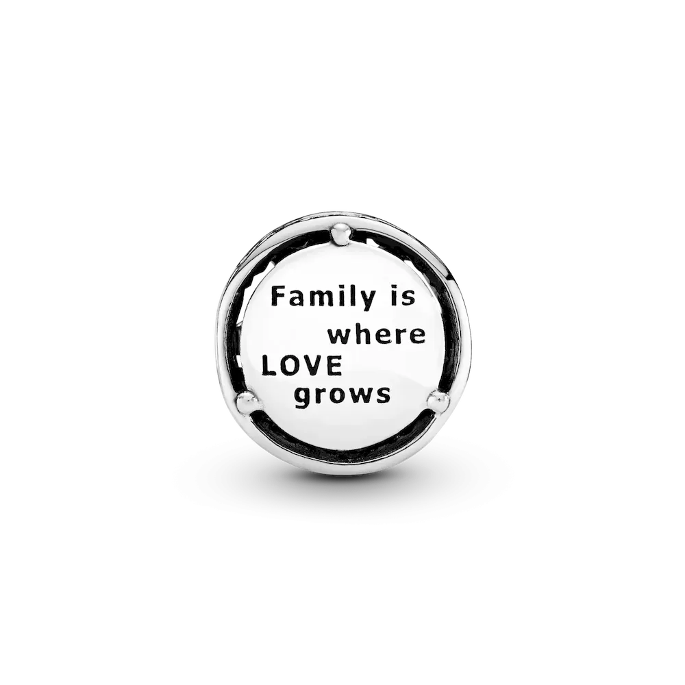 The family tree is a symbol of your growing family and the bonds you share, and this timeless charm in sterling silver is a keepsake of family love. The intricately crafted style is made from sterling silver and engraved with the message