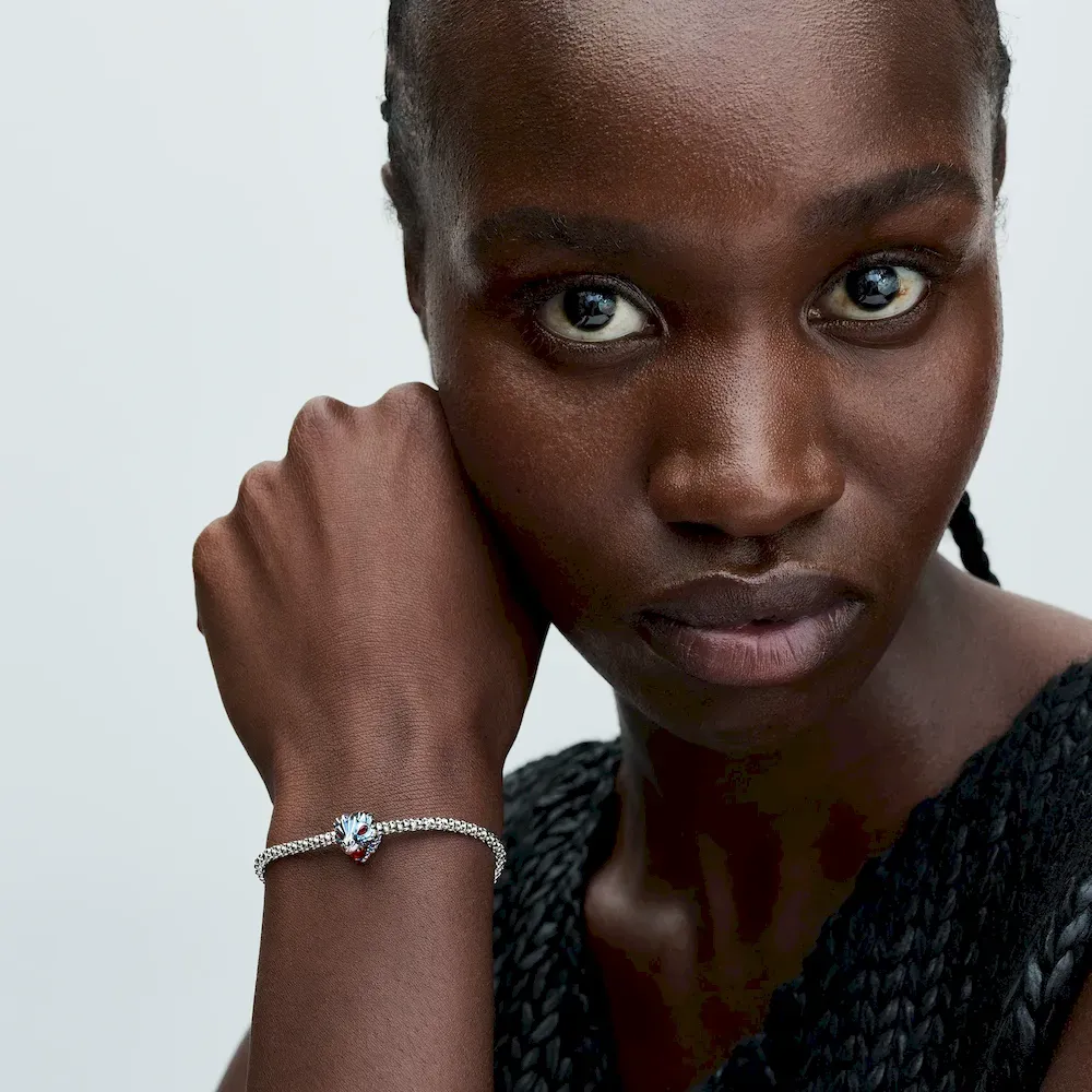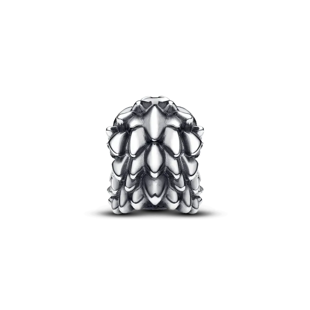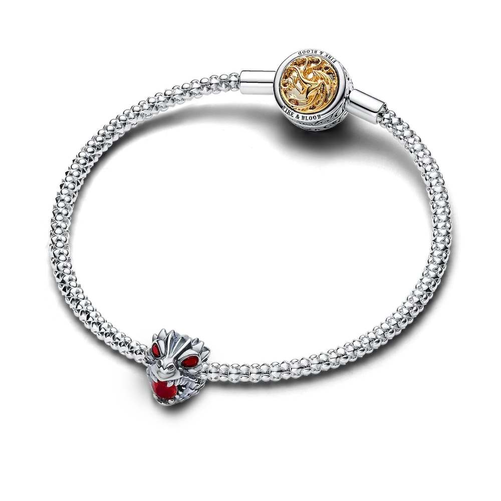 Hear the roar with our Game of Thrones Dragon Charm. Crafted in sterling silver, the dragon charm features a scale pattern on the creature’s head and pear-shaped red stones set as its eyes. The dragon is depicted with an open, roaring mouth with awe-inspiring teeth and a large red man-made crystal inside it, representing the fire that they breathe to serve and protect their loved ones. Inspired by the powerful, mythical creatures from Game of Thrones, this Pandora dragon charm lets you keep their awe-inspiring power close.