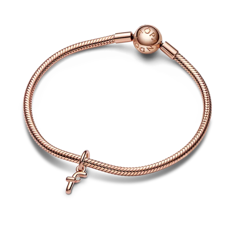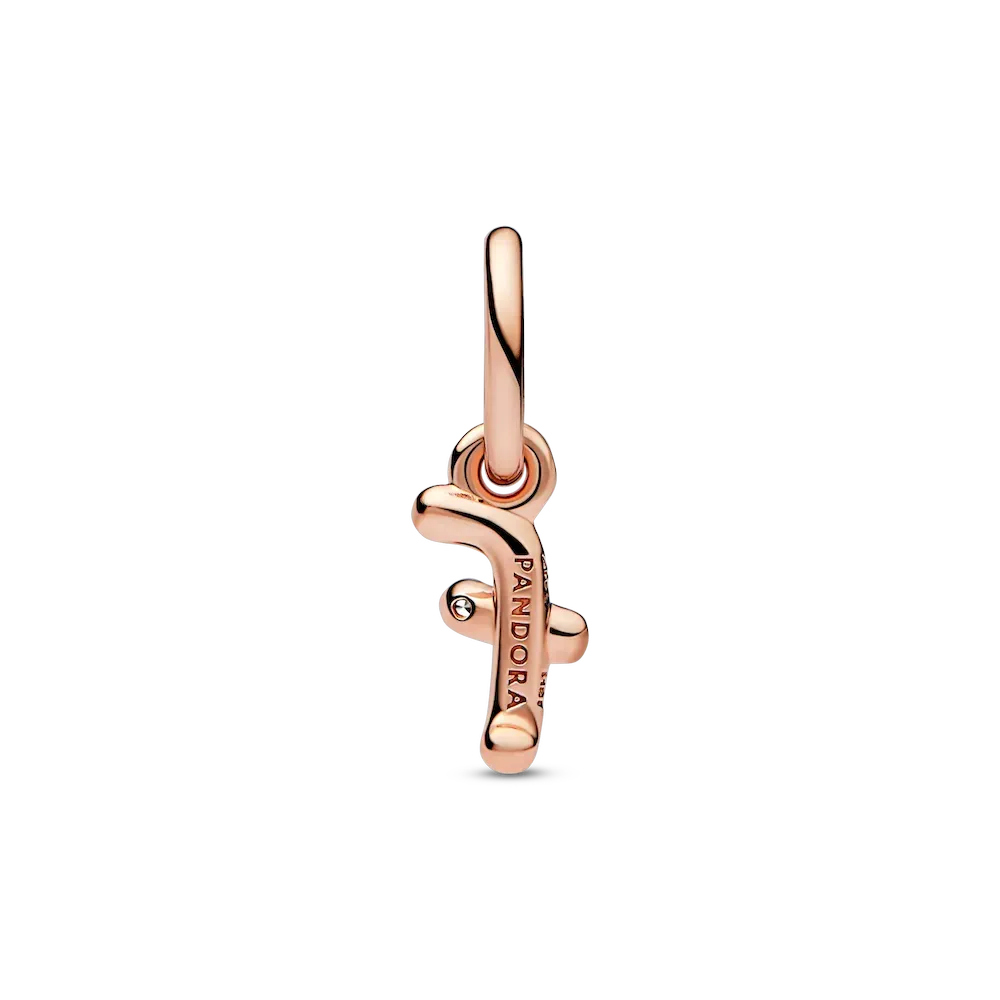 Spell it out with our Letter f Script Alphabet Dangle Charm. Inspired by bent wire and the movement of a pen across paper, this 14k rose gold-plated charm features a three-dimensional letter F that looks handwritten. The end of the lower-case letter is playfully punctuated with a round brilliant-cut clear cubic zirconia, representing that there is something precious in all of us. Wear it as a symbol of who you are or a reminder of someone you love.