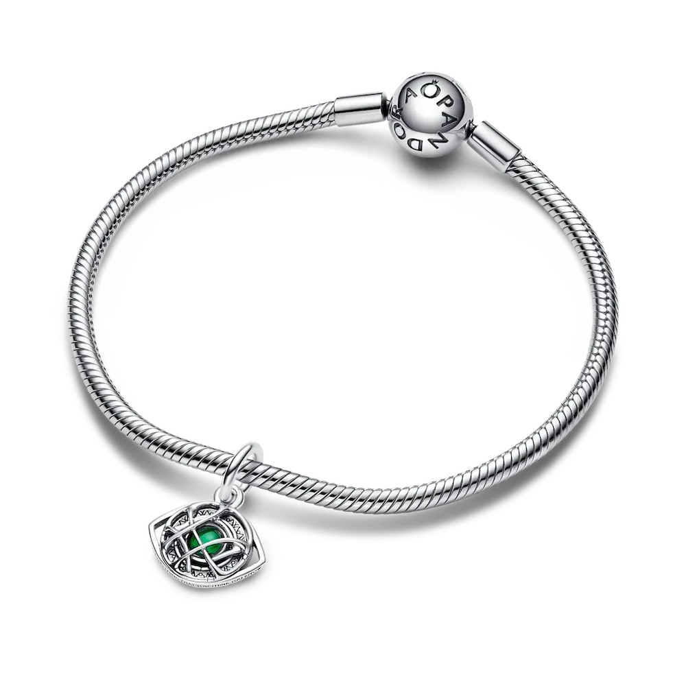 Summon the multiverse with Doctor Strange and the MARVEL Doctor Strange Agamotto Eye Dangle Charm. Shaped as an eye, the Eye of Agamotto disc features a green man-made crystal as well as the engraving