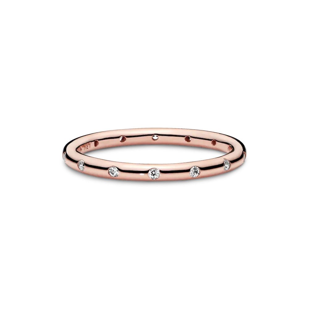 Add a subtle touch of sparkle to every outfit with our 14k rose gold-plated Simple Sparkling Band Ring, hand-finished and polished to a high shine. The classic eternity ring is detailed with shimmering cubic zirconia. Simple yet stylish, it looks elegant worn solo or when stacked with other Pandora rings in contrasting metal tones.