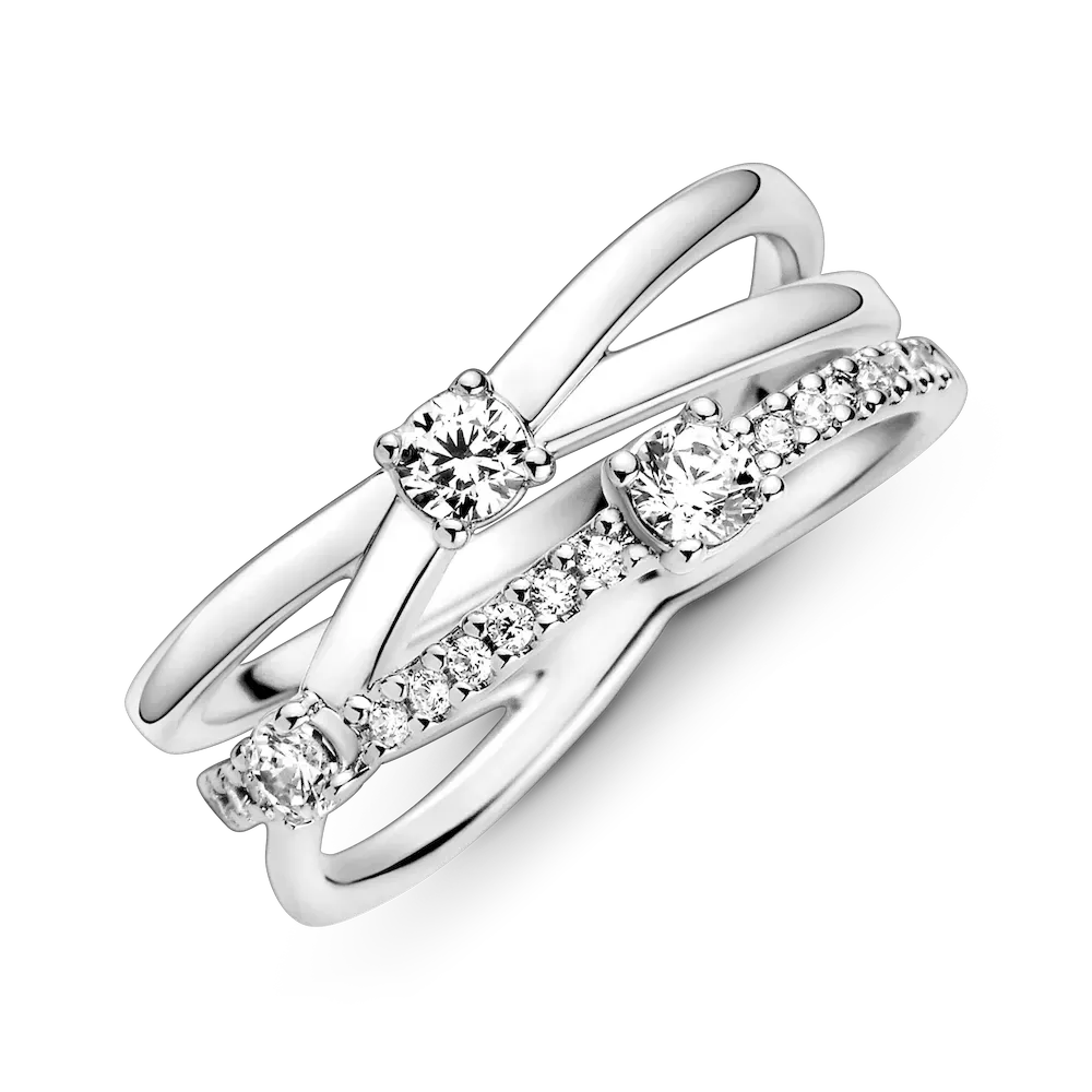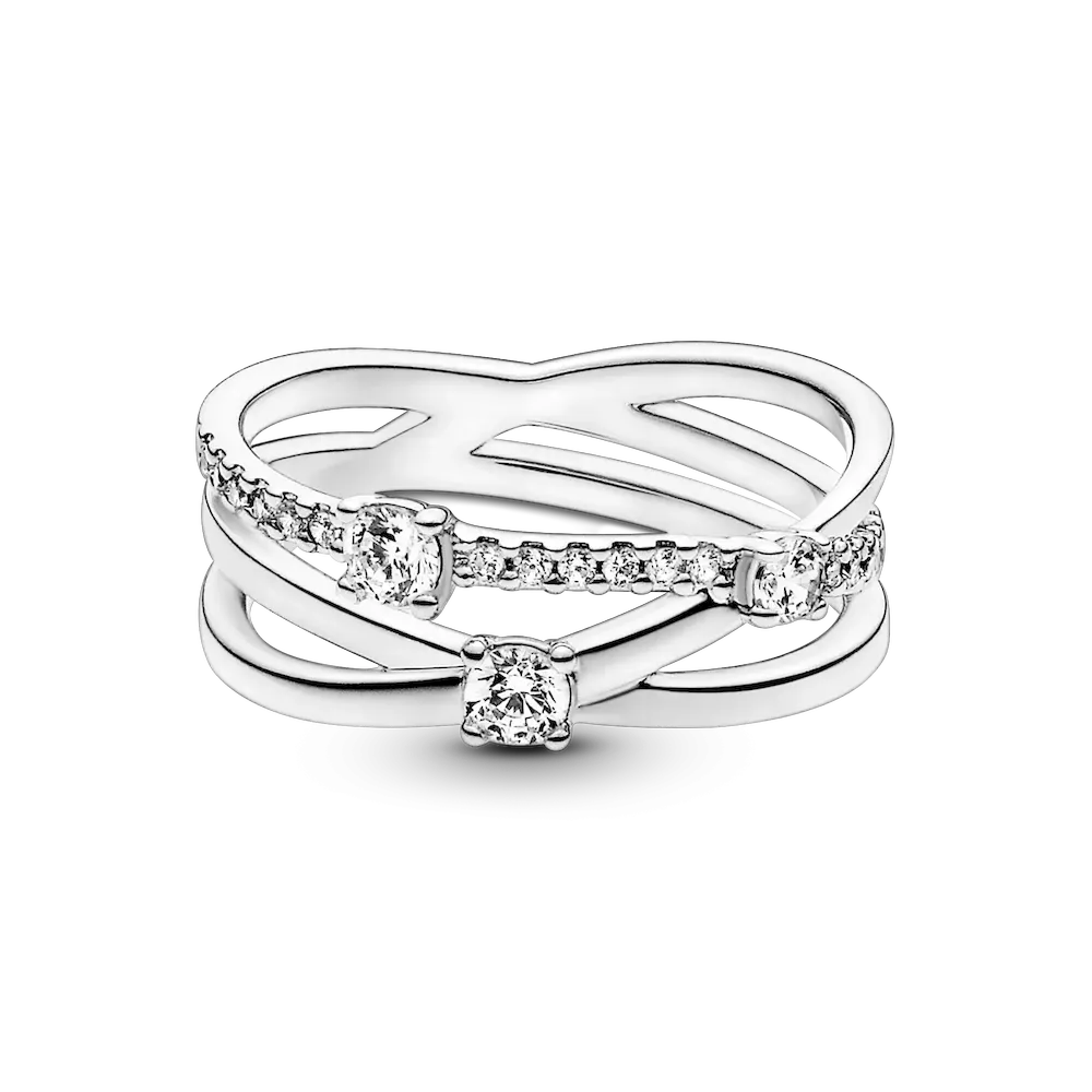 Say hello to a bold, pre-stacked statement piece with the Sparkling Triple Band Ring. This new take on a bestseller is accented with three large cubic zirconia and a pavé of smaller stones. The interlinked rings are a symbol of families coming together; the perfect gift for mom.