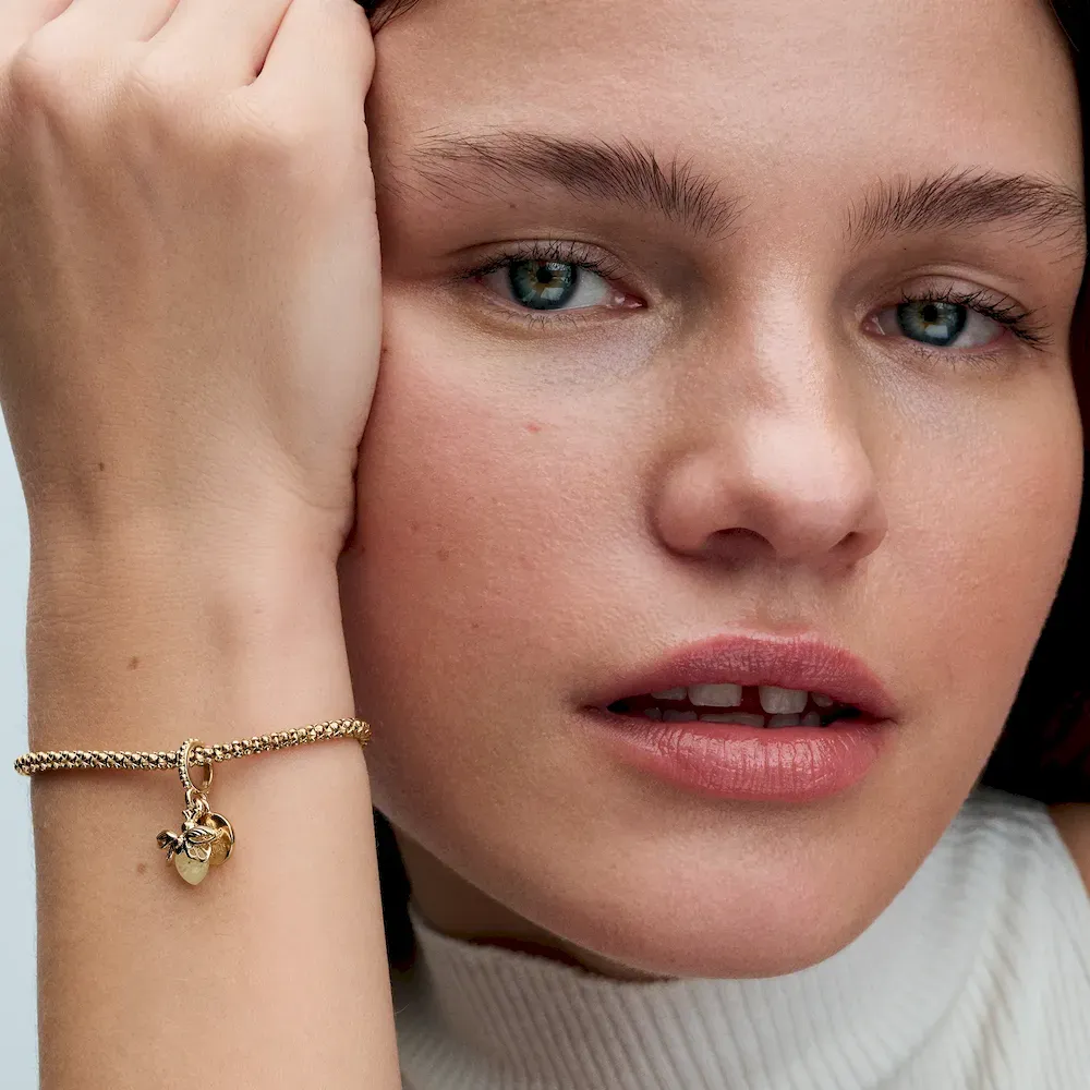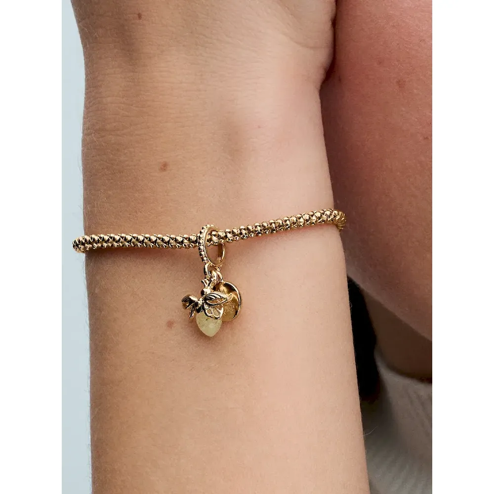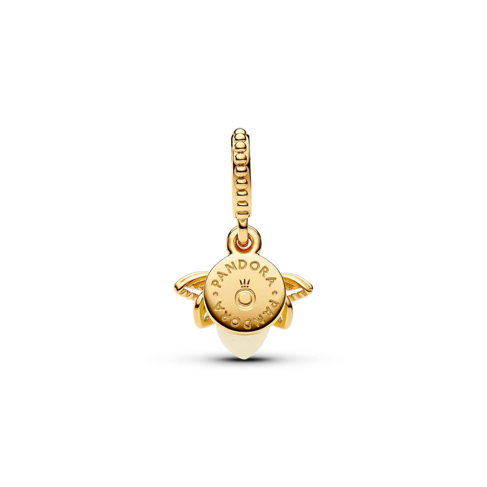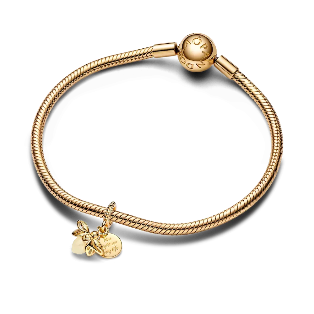 Light up your look with the Glow-in-the-dark Firefly Dangle Charm. This 14k gold-plated firefly charm features rounded glow-in-the-dark glass – white in the daylight and milky green at night – which recharges when exposed to sunlight or UV light. A second 14k gold-plated disc reads ‘You light up my life.’ This engraved charm makes the perfect gift for the one you love, or a stylish statement of self-love to remind you of the light you carry within.