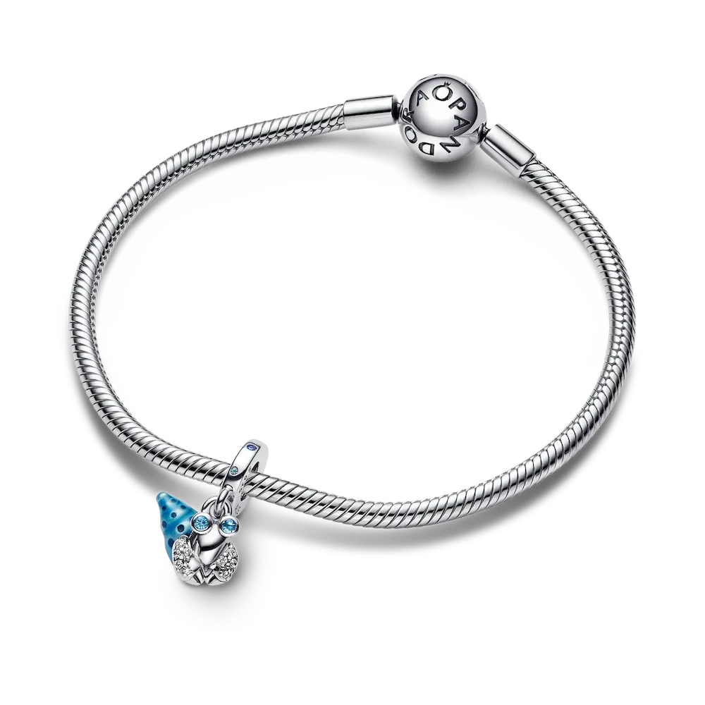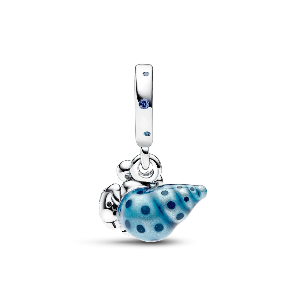 Home is a feeling you carry with you – just ask our little hermit crab. The Glow-in-the-dark Hermit Crab Dangle Charm is crafted from sterling silver and features a cute hermit crab with realistic details and a spiral shell with hand-applied spotted blue enamel that glows green in the dark. Sparkling stones on the eyes, claws and bail bring the charm to life. Hermit crabs find a shell to call home, and when they outgrow the shell, they relocate to a new one. Wear this charm as a symbol of the comfort and safety of home and our ability to carry that feeling with us as we change and grow.