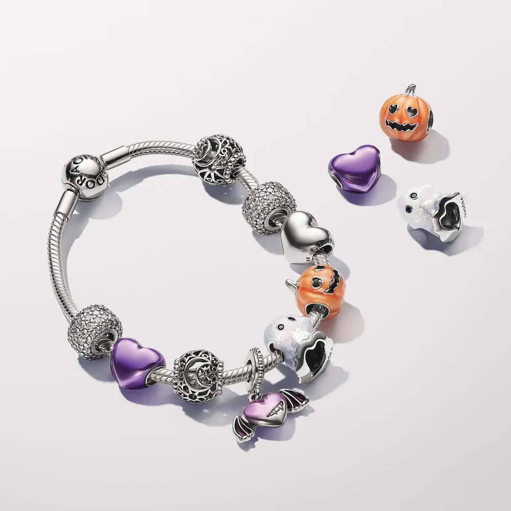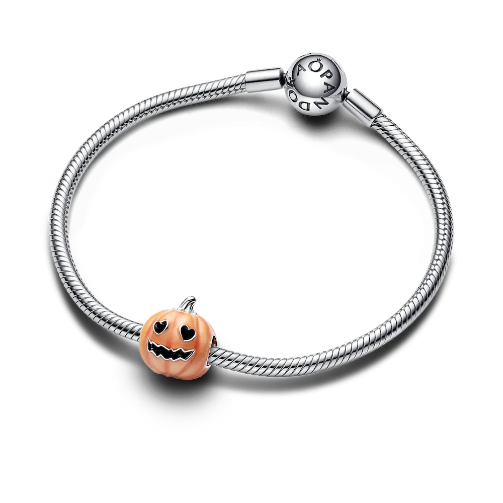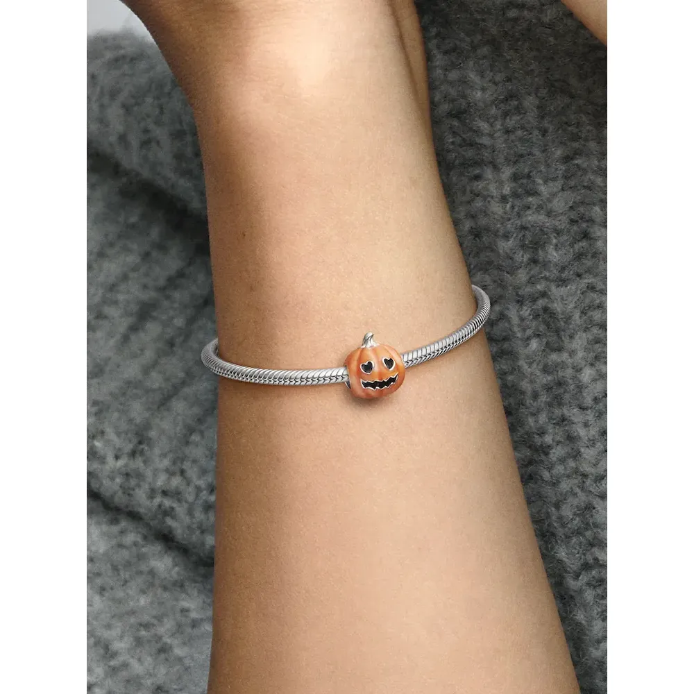This delightful Glow-in-the-dark Spooky Pumpkin Charm in sterling silver is the perfect Halloween friend. Intricately detailed with a spooky face and heart-shaped eyes, this enamel-painted charm turns dark green when the lights go out – as if by magic. Get into the spirit of the scariest time of year by combining it with other holiday charms for a stylish Halloween look.