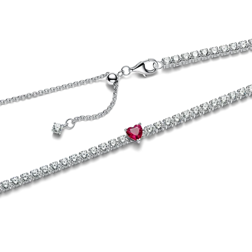 Keep your heart in the right place – at the center of your look. This sparkling necklace features a cherry red man-made crystal, which hangs in the middle of a sterling silver chain. Finished with a sliding clasp, the necklace can be adjusted to suit your style. Wear it high on the collarbone as a colourful statement, or lower on the chest as part of a sparkling stack.