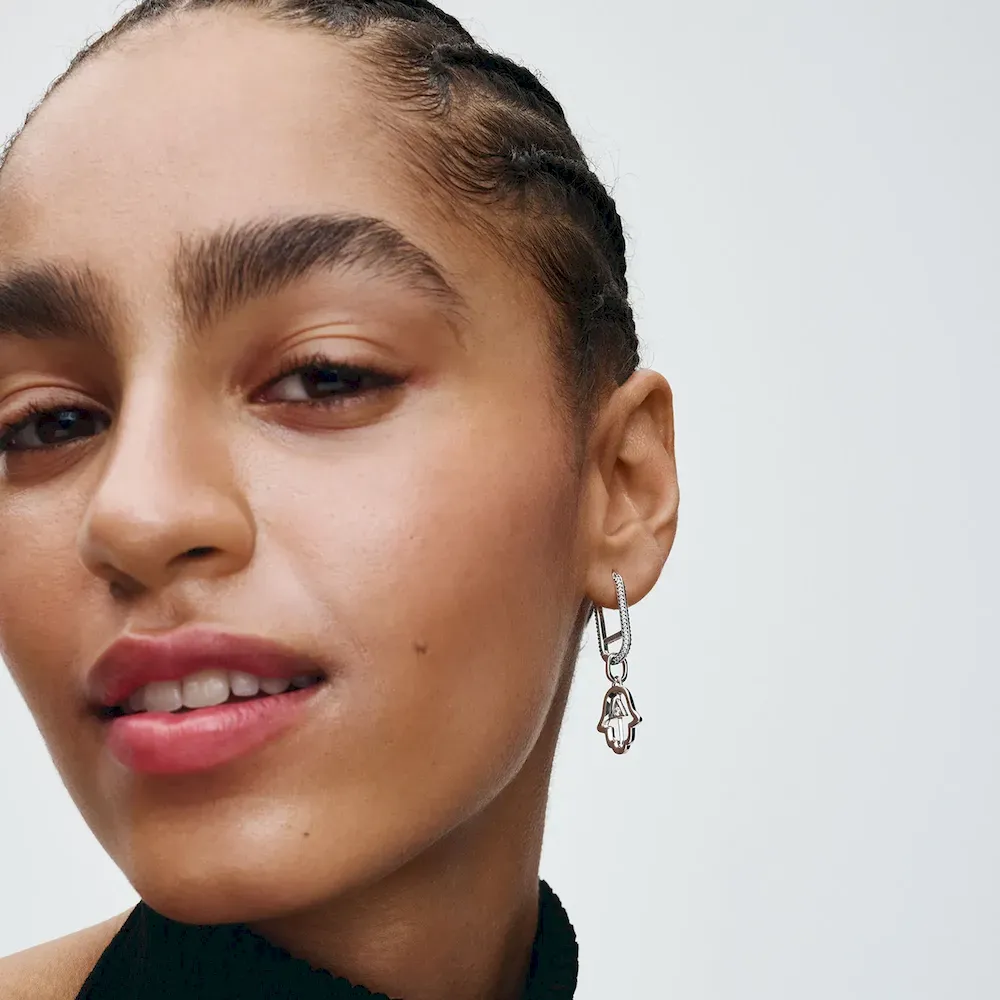 Channel positivity with our sterling silver Hamsa hand charm. Featuring a radiant stone at its center and outlined with microbeads on the back, this medallion is a mystical symbol of protection, abundance and friendship. Add it to your collection as a talisman to welcome in positive vibes and ward off negative energy.