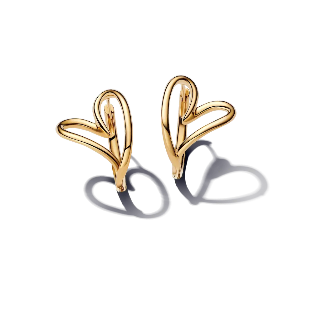 Celebrate love and nature with the Hearts Forever Jewelry Set. The Organically Shaped Heart Pendant Necklace features a twisted 14k gold-plated wire in varying thicknesses, creating a beautifully imperfect openwork heart. Adjustable for versatility, this necklace lets you choose how the pendant hangs—at an angle or straight. The matching Organically Shaped Hoop Earrings feature abstract openwork hearts, inspired by the natural world, and are finished in 14k gold plating. With their simple click closure and mirrored design, these earrings pair effortlessly with the necklace for a modern take on love and nature.